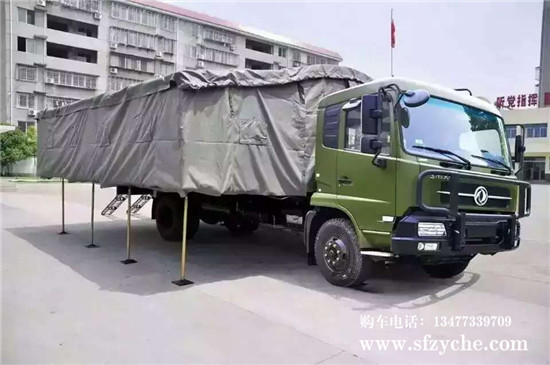 東風原廠EQ5118XZS6D15型宿營車和EQ5120GA1型天錦宿營車6.1米篷布配套直供。適用于東風EQ5118XZS6D15宿營車和EQ5120GA1天錦宿營車等東風系列車型,軍用宿營車供部隊野外住宿使用。車箱內部尺寸6100mmX2210mmX1850mm。宿營車車廂在采用折疊式雙邊板,增加滑道內設支撐桿,可拆式帳篷。平時可作為普通高欄板軍車使用;部隊需野營時,放平雙邊板并支撐好,搭好帳篷,就可以形成一座面積達38㎡的高臺帳篷,可供36人住宿用。 東風原廠宿營車篷布總成價格一套為5300元含稅。