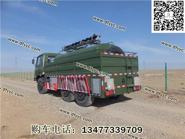 3、越野性能:東風康明斯6缸BT系列190馬力柴油增壓發動機 12.5R20鋼絲子午線越野花紋加寬型輪胎 軍工機械式六檔變速箱 新型發動機、全油路、進氣道自動電加熱系統,可在-41℃環境下在駕駛室內一鍵啟動 250mm雙層車架,承載能力加倍提升 350L超大油箱,滿足1300公里無需加油 三座單臥、環形儀表臺新款駕駛室 后置絞盤,牽引力44100N(選裝)。可在此越野底盤基礎上改裝成越野廂式車,越野油罐車、越野灑水車、越野消防車、越野隨車吊、越野吸污車、越野平板車、越野運兵車等專用越野車型。東風越野車:www.dfyyc.com 東風越野客車:www.wgsj88.com