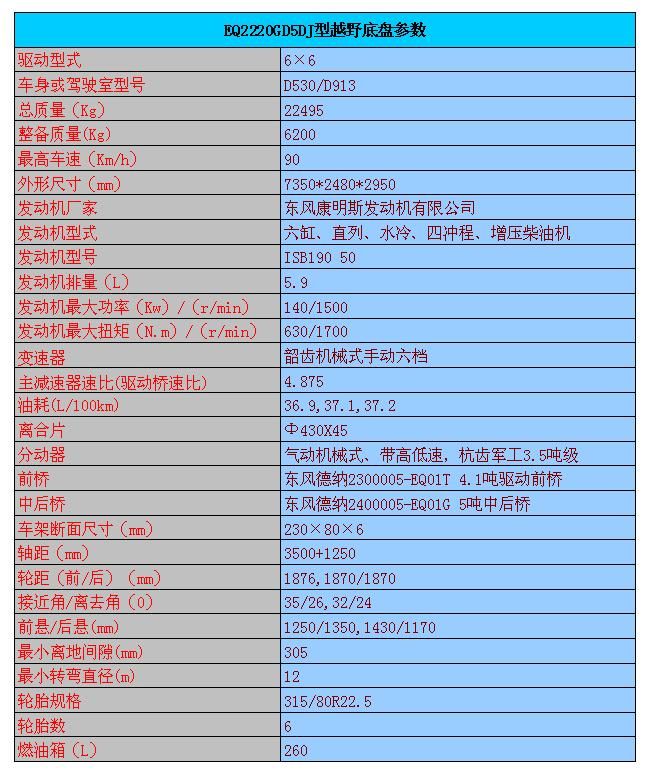 潤知星牌SCS5220XXYEQ型廂式運(yùn)輸車簡介:六驅(qū)越野箱式應(yīng)急保障車采用東風(fēng)EQ2220GD5DJ型越野汽車底盤,東風(fēng)D530寬體一排半駕駛室,帶空調(diào),6*6驅(qū)動,康明斯190馬力發(fā)動機(jī)正宗國五,機(jī)械式六檔變速箱,315/80R22.5 越野輪胎,帶備胎,ABS,標(biāo)準(zhǔn)車廂尺寸:4900×2400×2200(mm)。