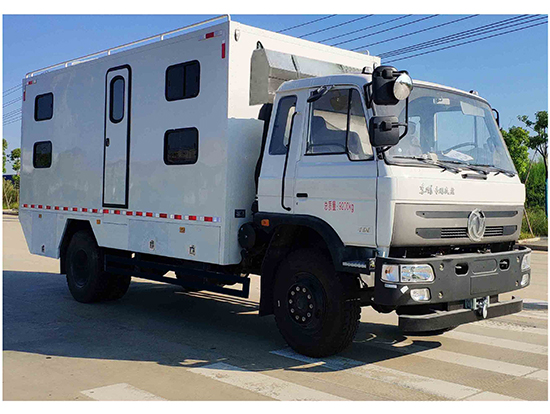 一、東風四驅越野宿營車簡介:東風四驅越野宿營車整個廂體分為三個部分,住宿區、洗漱區、餐飲區。住宿區包括四個上下鋪,床頭燈,液晶電視,空調等。洗浴區包括臉臺,衛生間,熱水器等。餐飲區包括無煙灶臺,可活動餐桌,洗菜盆等。也可以根據用戶的需要設計,可增加會議室,辦公區等,東風四驅越野野外宿營車適用于沙漠石油勘探野外作業、野外拉練、公路局野外作業等,可以在沙漠地區,道路崎嶇的山區為工作人員提供野外生存的食宿保障,也可以作為辦公指揮車進行指導工作。適合于部隊、勘探、搶險等野外作業環境。其底板采用鐵木混合結構,折疊式雙邊板,增設活動支撐桿,可拆式帳篷。平時,可做普通高欄板車廂使用;需野營時,放平雙邊板并支撐好,搭好帳篷,就可形成一座面積不同的高臺帳篷,可供不同編制人員住宿使用。