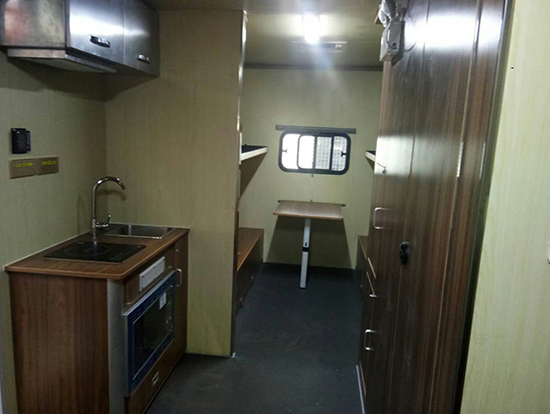 1、整個車體分成了廚房、休息區、洗浴區三個區域。