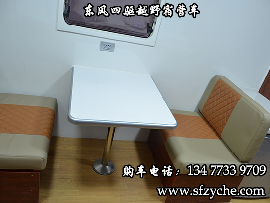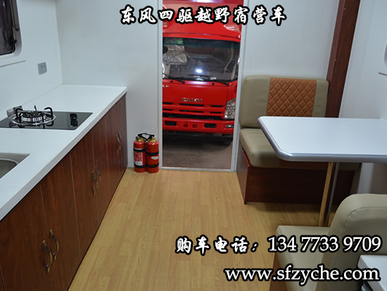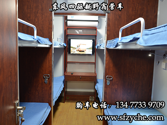 東風大型四驅越野房車滿足更多路況復雜環境使用,廂體內裝有豪華折疊床、液晶電視、儲物柜、應急燈、頂燈、頂置空調、床墊、被褥、燃油加熱器、頂護欄、爬梯、隱藏抽拉梯、專用房車門、中空玻璃、戶外燈。由保溫廂體、空氣調節系統、宿營設施、影音系統、電氣系統、通風換氣系統、洗漱和衛生設施。整個廂體分為三個部分,住宿區、洗漱區、餐飲區。住宿區包括四個上下鋪,床頭燈,液晶電視,空調等。洗浴區包括臉臺,衛生間,熱水器等。餐飲區包括無煙灶臺,可活動餐桌,洗菜盆等。也可以根據用戶的需要設計,可增加會議室,辦公區等。東風大型四驅越野房車內飾圖片:
