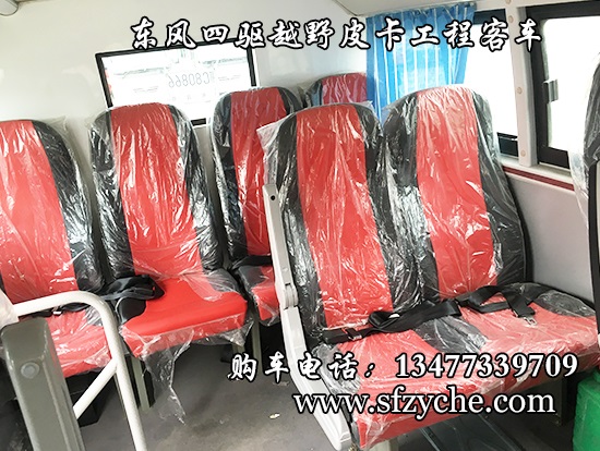 6.鋁花紋地板,中檔皮革座椅5-9個,整車座椅3點式安全帶,手動式外擺門,正副司機門,選裝東風原廠派恩頂置空調(diào)