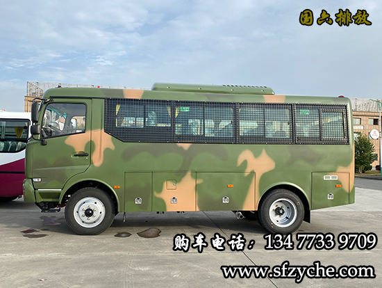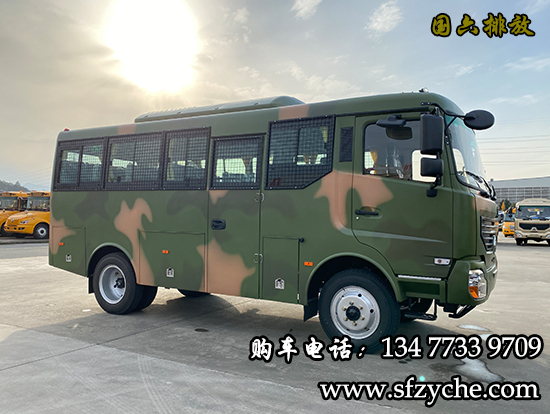 EQ6680ZT6D型10-23座四驅森林消防運兵車配置:采用東風EQ6640KZ6T型四驅越野三類底盤,發動機型號:D4.0NS6B170康明斯170馬力國六排放,4.0L排量帶增壓,變速箱為法士特手動六檔變速箱,整車外形尺寸長寬高(6800X2280X3155)mm ,軸距3800mm,驅動形式:4×4,離合助力,方向助力,斷氣剎,鼓式制動,ABS,行車記錄儀,車橋為東風德納2.7噸驅動前橋,5.5噸驅動后橋,3.5噸分動箱,輪胎為7.50R20鋼絲胎,工具箱3個,粘接式推拉玻璃,鋁花紋地板,中檔座椅,手動式外擺門,駕駛室正副司機門,整車窗簾,滅火器1個,備胎一個,其它為EQ6680ZT6D型四驅越野客車標配。選裝配置:東風派恩大功率頂置空調,獨立柴油鍋爐暖風,頂置警燈帶喊話器,頂置行李架帶爬梯,后對開門,中置氣動門等。