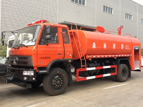 東風四驅越野森林消防水罐車_東風11.1噸四驅消防水車_國五四驅越野森林滅火水車_東風4×4越野SCS5183GPSEQ型四驅綠化噴灑車簡介:采用東風EQ2180GD5DJ型越野汽車底盤,東風153寬體駕駛室,4×4驅動,康明斯ISB190 50國五發動機,六檔變速箱,東風商用車橋,前驅動橋3.8噸,后橋10噸,10.00R20輪胎,軸距4500mm,電動玻璃,方向助力,斷氣剎,ABS。罐體采用優質碳鋼Q235板材,板材厚度4mm,罐體容積11.1立方,安裝夾心取力器,后置泵箱,消防栓接口左右各一個,消防炮采用PS40消防水炮,流量40L/S/1.0MPa 水射程:≥50m,消防泵采用常壓消防泵型號:CB10/40車用消防泵,流量:40L/s,壓力:1.0MPa,駕駛室頂部安裝長條警燈帶喊話器,全車顏色橘紅,兩側噴涂白色森林消防字樣。