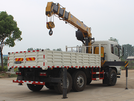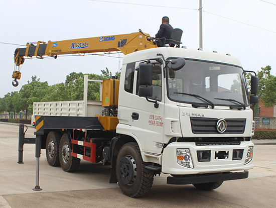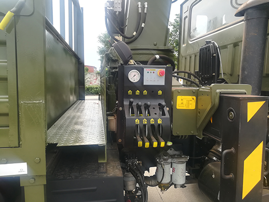 2. 采用徐工5噸折臂式隨車吊,SQZ105型徐工原廠吊機,最大起重質量5噸,三節臂,舉升高度11米,工作半徑8米,全液壓,全回轉,車廂尺寸4.25米,遠程油門控制,下操作。