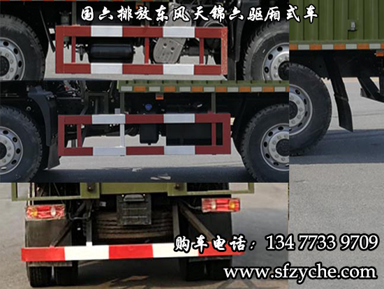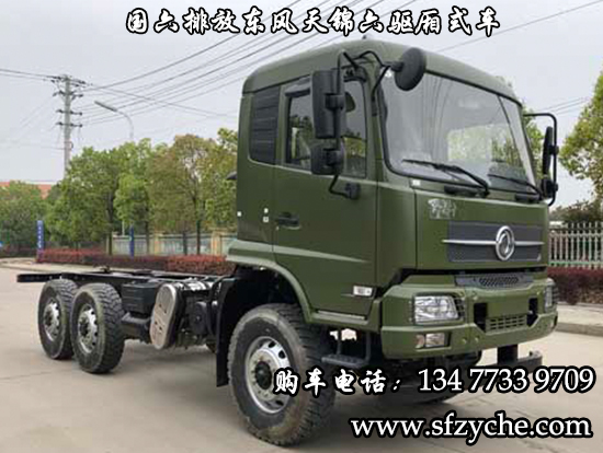 東風天錦DFV2163XXYGP6D1型六驅越野廂式運輸車底盤配置,東風天錦D530一排半駕駛室,6×6驅動,康明斯B6.2NS6B210國六發動機210馬力,最大扭矩:850N.m/1100-1700rpm,排量6.2L、韶齒手動六檔變速箱,東風德納車橋,前驅動橋5噸雙聯半軸結構,中后橋都為軍工德納5噸驅動橋,315/80R22.5大花紋越野輪胎,280mm雙層大梁,軸距3500+1250mm,電動玻璃,方向助力,斷氣剎,ABS,大燈自動調節,自動調整臂,原廠空調。車廂尺寸4.9米可以拉約22立方的輕量化貨物,可以拉動10噸的重載貨物,廂式車選裝中開門,后開門,上下貨物更加方便便捷,廂體形式可以選擇,瓦楞板廂體,保溫箱廂體等。