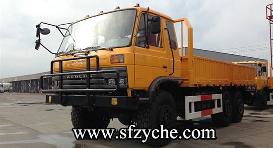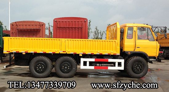 2、詳細(xì)配置:平頭一排半駕駛室,6*6驅(qū)動,康明斯190馬力,韶齒6檔變速箱,斷氣彈簧制動,貫通式中后驅(qū)動橋,12.5R20越野胎,軸距 3500+1250mm,加厚雙層大梁,貨箱4850mm,帶軍用保險杠。(新款仿天錦駕駛室加價1.5萬元)東風(fēng)越野卡車:www.wgsj88.com