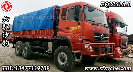 東風牌EQ2251AX型沙漠越野車配置:采用東風新款D310平頂單臥駕駛室,發動機:康明斯375馬力國四發動機 直列增壓中冷六缸水冷柴油機 ISLe375 40;北方奔馳同步器型9擋箱 9T-160 Φ430mm,膜片彈簧拉式離合器,7T前橋,10T 重慶大江雙級減速雙后橋 14.00-20輪胎 (選裝20-20 沙漠胎)軸距3800+1400 鋼板彈簧片數9/10,油箱350L,貨箱尺寸:5720×2294×800mm,整車外形尺寸:8470×2500,2700×3520,動力轉向。如需了解更多東風六驅沙漠車圖片,東風六驅沙漠車價格,東風六驅沙漠車參數,請立即撥打銷售熱線:13477339709 李經理 0722-7053060 業務QQ:530233927,東風越野卡車網址:www.wgsj88.com