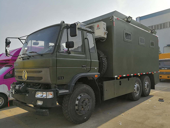 相關車型東風國五六驅越野自行式炊事車_東風軍用六驅炊事車_六驅野戰自行式餐廚車為部隊提供一種機動、高效的專用現場飲食保障裝備,滿足部隊平時及野外值勤時的主副食的飲食保障工作,并解決部隊行進中不停車做飯菜的需要及供應飲用水的需求。六驅自行炊事車功能簡介:該裝備主要編配于部隊,為部隊官兵野外作業時提供良好的飲食保障:具有制作食品、保溫食品和儲存食品的空間與功能、并具有提供開水和餐具消毒的功能。