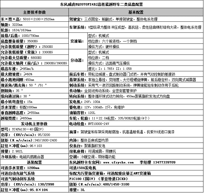 東風EQ2070FFZ4D型高性能越野特種車是一款技術先進、性能卓越、多功能、全天候的特種越野車,也是中國上唯一在沙漠、山區等極其艱苦環境條件下顯示高技術、高性能和高可靠性的軍用和特殊民用汽車。該產品,無論是越高山峻嶺、穿林海雪原,還是闖茫茫沙漠、涉沼澤泥潭,無論是用作防彈運兵、戰地救護,還是用作森林消防和野外勘探,它都能以超一流的越野通過能力、高涉水性,可靠耐久性和優異的上裝適用能力,令世人嘆為觀止,當之無愧地成為挑戰越野極限的明星。如需了解更多EQ2070FZ4D型越野四驅汽車的詳細參數和配置請立即撥打銷售熱線:13477339709 李經理 0722-7053060 業務QQ:530233927,微信號:13477339709 ,東風越野卡車網址:www.wgsj88.com