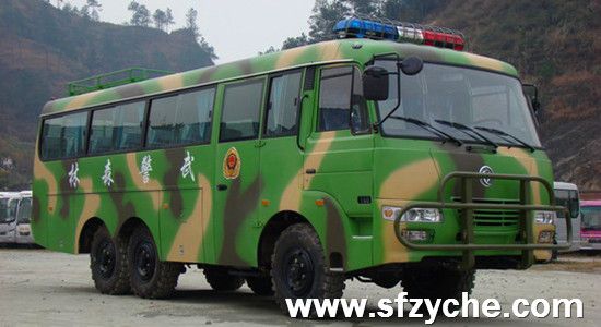 東風六驅越野客車采用康明斯160馬力發動機,東風5擋變速箱,整車長8.4米,寬2.35米,高2930米,采用東風EQ6840東風特汽越野車專用底盤,最多座位數30座,采用11R18大花紋越野輪胎,整車迷彩色,選裝空調暖風系統。