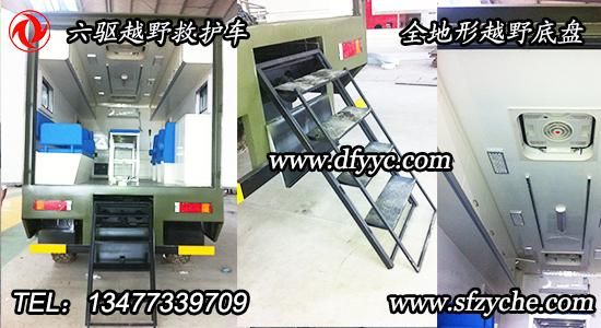 如需了解更多東風六驅越野救護車圖片,東風六驅越野醫療車價格,東風六驅越野救護車參數,請立即撥打銷售熱線:13477339709 李經理 0722-7053060 業務QQ:530233927,東風越野卡車網址:www.wgsj88.com 東風越野車:www.dfyyc.com 可在此越野底盤基礎上改裝成越野廂式車,越野油罐車、越野灑水車、越野消防車、越野隨車吊、越野吸污車、越野平板車、越野運兵車等專用越野車型。