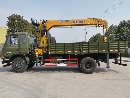 3. 采用徐工8噸直臂吊機,徐工原廠SQS200型直臂吊機,四節臂,舉升高度13.5米,工作半徑11.5米,最大起升質量8噸,360度全液壓,全回轉,選裝徐工原廠高空操作座椅上操作,徐工雙腔液壓后支腿,車廂4.8米標準大箱。