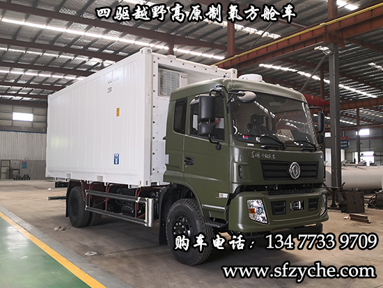 東風四驅越野高原制氧方艙車:采用東風EQ2180GD5DJ型越野汽車底盤,東風一排半駕駛室,4×4驅動,康明斯ISB190 50國五發動機,六檔變速箱,東風商用車橋,前驅動橋3.8噸,后橋10噸,10.00R20輪胎,軸距4500mm,電動玻璃,方向助力,斷氣剎,ABS。